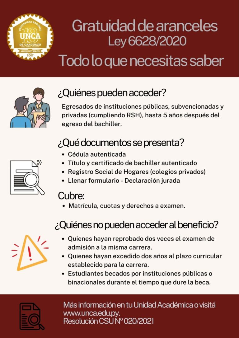 Informaciones sobre aplicación de la Ley N°6628/2020 de Gratuidad de Aranceles
