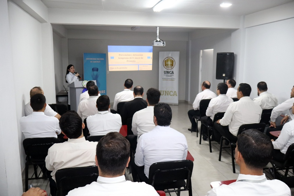 Charla de información y sensibilización en el marco del Día Mundial de la Prevención del Cáncer de Próstata dirigida a funcionarios del Rectorado Impartida por la Dra. Amanda González, especialista en Urología del Hospital General de Coronel Oviedo. La exposición abarcó factores de riesgo, signos de alerta, métodos de diagnóstico y la importancia de la consulta médica periódica.